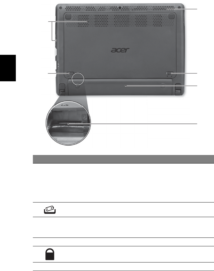 4 Akkumulátorfoglalat A számítógép akkumulátorát fogadja be.